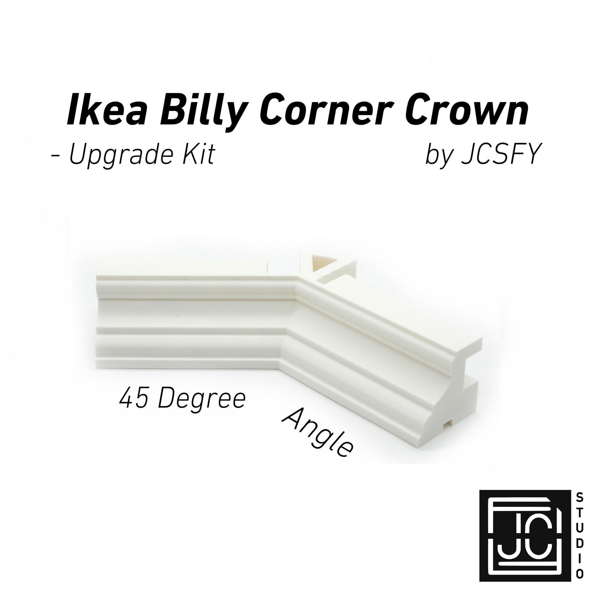 45 Degree Crown Molding Corner Upgrade | Works with JCSFY IKEA Billy Crown Molding | Add Corner Fitment to Top Trim Kit | Shelf Alignment