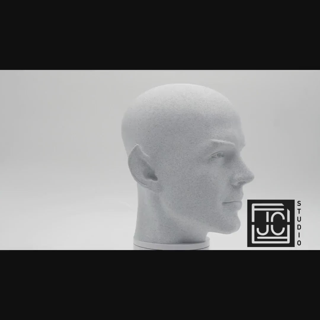 Bald Spock Bust – Minimalist Vulcan Sculpture | 3D Printed Sci-Fi Statue for Office & Library Decor