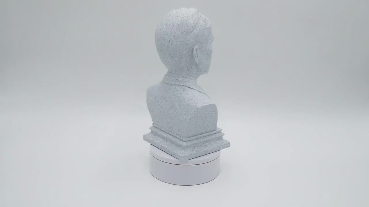 The Bill Nye bust sculpture is a finely crafted tribute to the iconic science educator and television personality known as The Science Guy. This 3D printed bust captures Bill Nye's energetic spirit and passion for scientific discovery, making it an inspiring addition to any home office, study room, or science classroom decor. Measuring 5", 9", or 12" tall, this museum quality statue is made from eco friendly PLA material, ensuring durability and sustainability while providing a realistic and detailed finish. Perfect for educators, students, and science enthusiasts, this sculpture brings the excitement of scientific discovery art right to your desk or bookshelf.