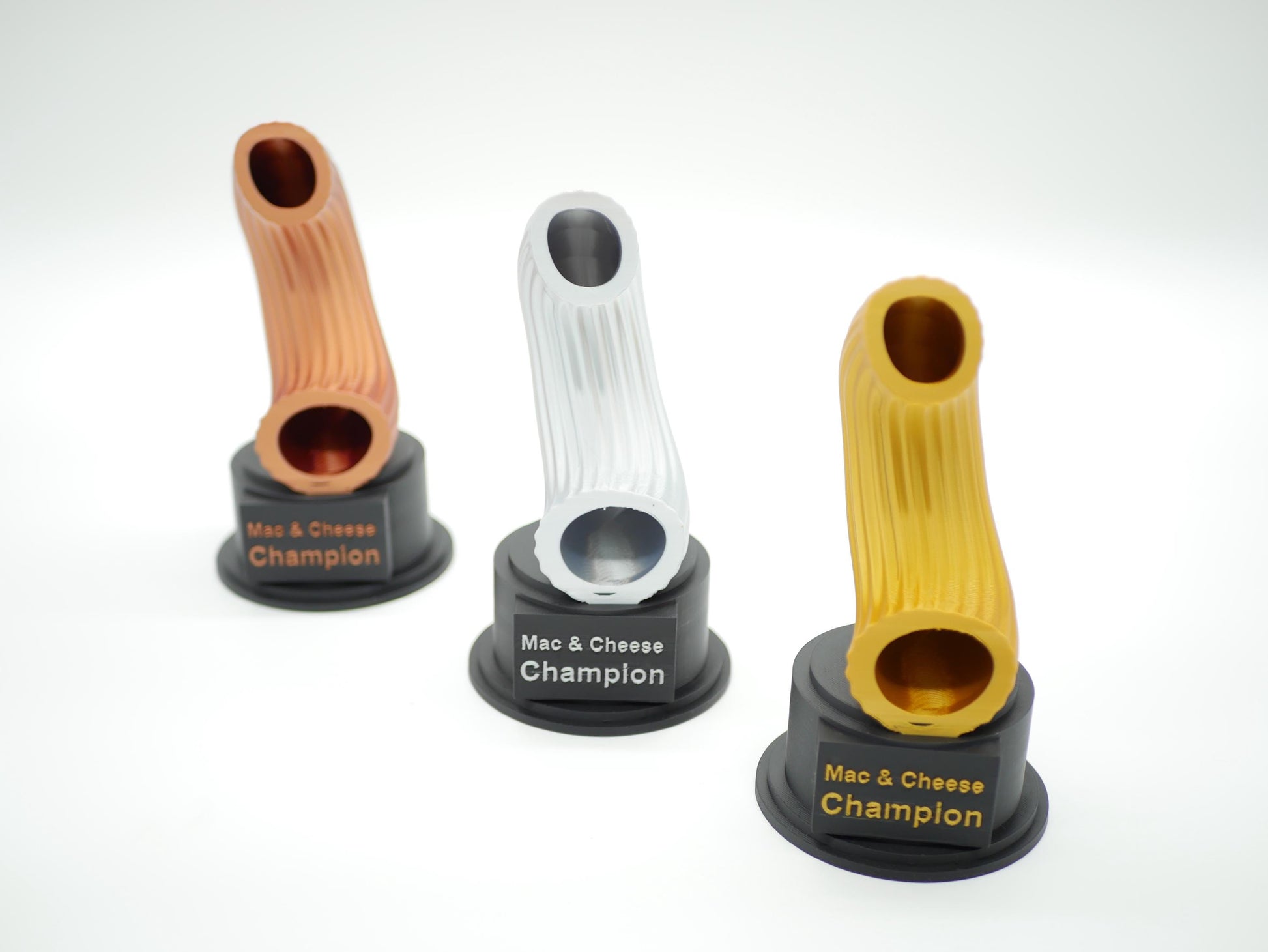 From silly and fun (like our “Mac & Cheese Champion” noodle trophies) to elegant statement awards (like our “Grand Prix” lion sculpture), we craft awards that match your vibe.