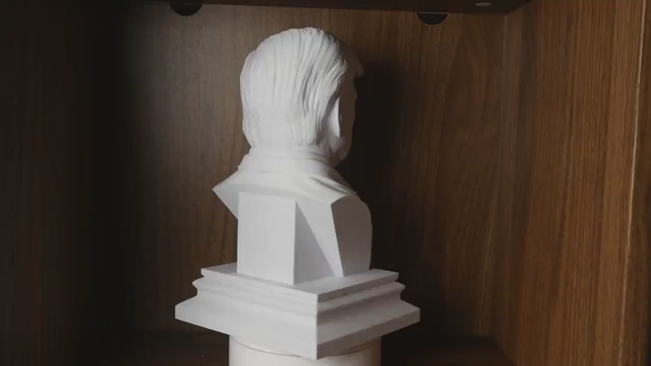 Available in three sizes—12 inch, 9 inch, and 5 inch—each bust is made from eco-friendly PLA, ensuring durability and a clean finish suitable for any setting. The precise 3D printing process delivers sharp details that highlight facial features and expression, creating a lifelike yet stylized statue that serves as both political decor sculpture and contemporary political art.