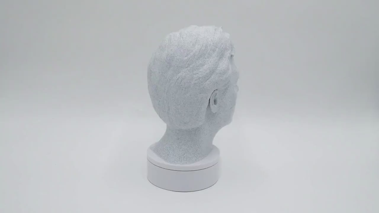 The Mark Ruffalo bust is a finely crafted 3D printed sculpture designed to celebrate the acclaimed actor and environmental activist. This detailed actor statue collectible brings the movie actor bust to life, making it an ideal home office decor piece or library display piece for film lovers. Measuring 12", 9", and 5", each museum quality statue is printed using eco friendly PLA, ensuring durability and sustainability. The custom color finish options allow you to personalize this celebrity bust sculpture to suit your space or gift preferences.