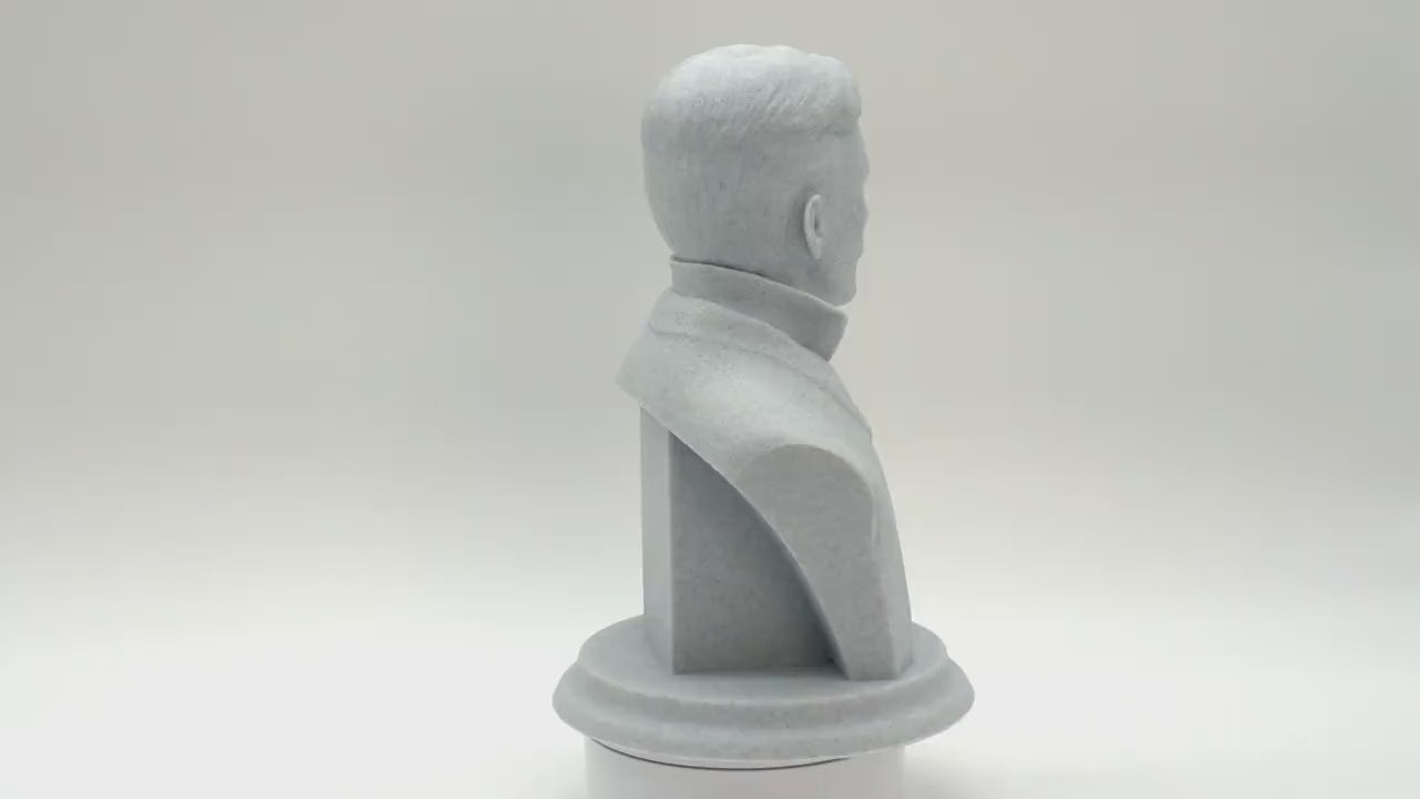 This Nikola Tesla sculpture captures the essence of the legendary inventor and electricity pioneer in a beautifully detailed 3D-printed bust. Designed to inspire science fans and history enthusiasts alike, this Nikola Tesla sculpture offers a striking addition to any home or office space, celebrating Tesla's groundbreaking contributions to electricity and engineering. Crafted from eco-friendly PLA material, this bust combines durability with an environmentally conscious choice, perfect for long-lasting display.